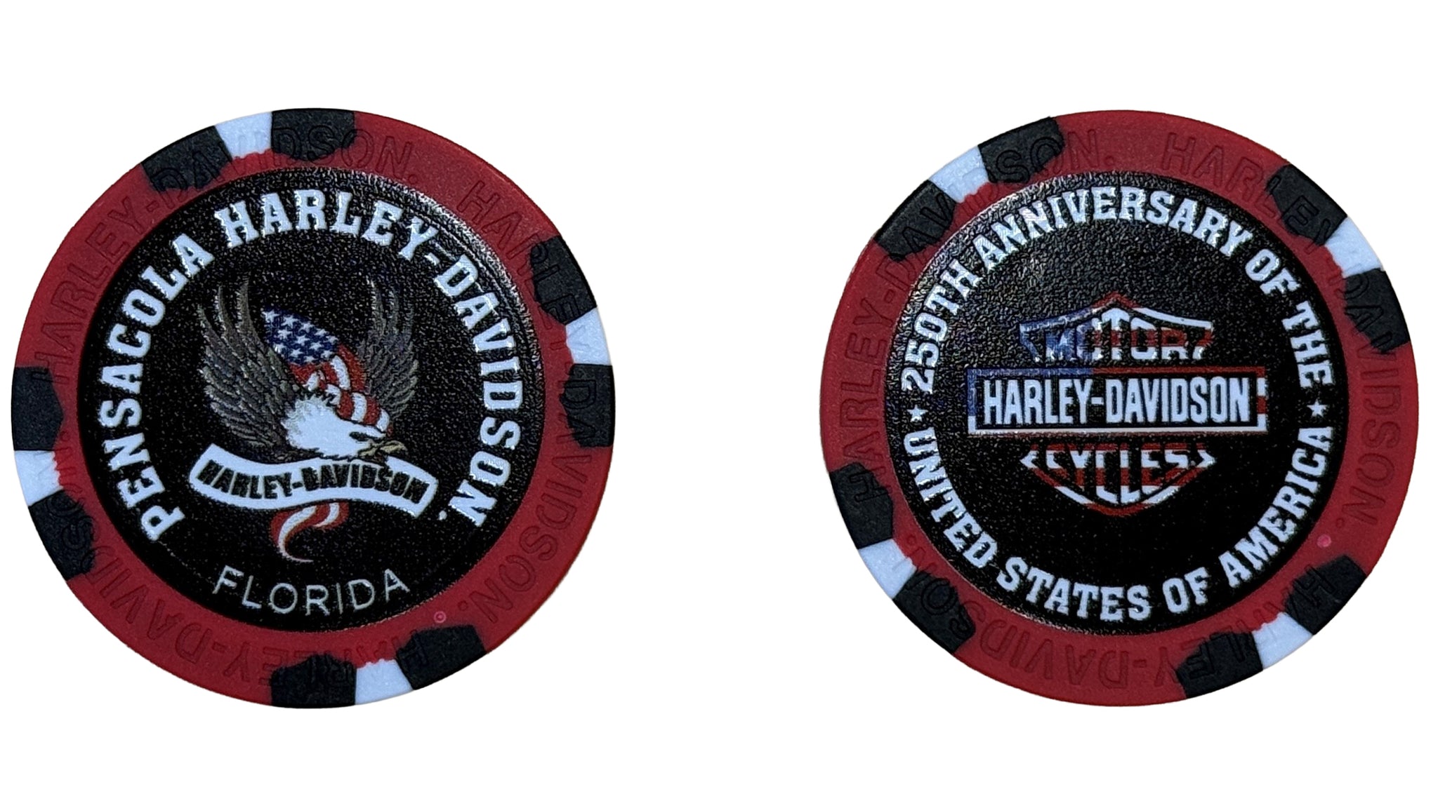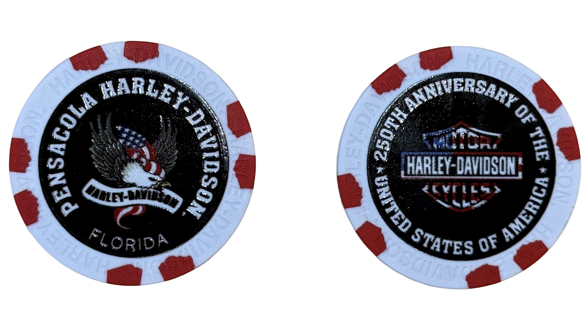 Pensacola Harley-Davidson® wants to celebrate the 250th Anniversary of the GREATEST NATION EVER by getting a collectible poker chip so EVERYONE can enjoy!